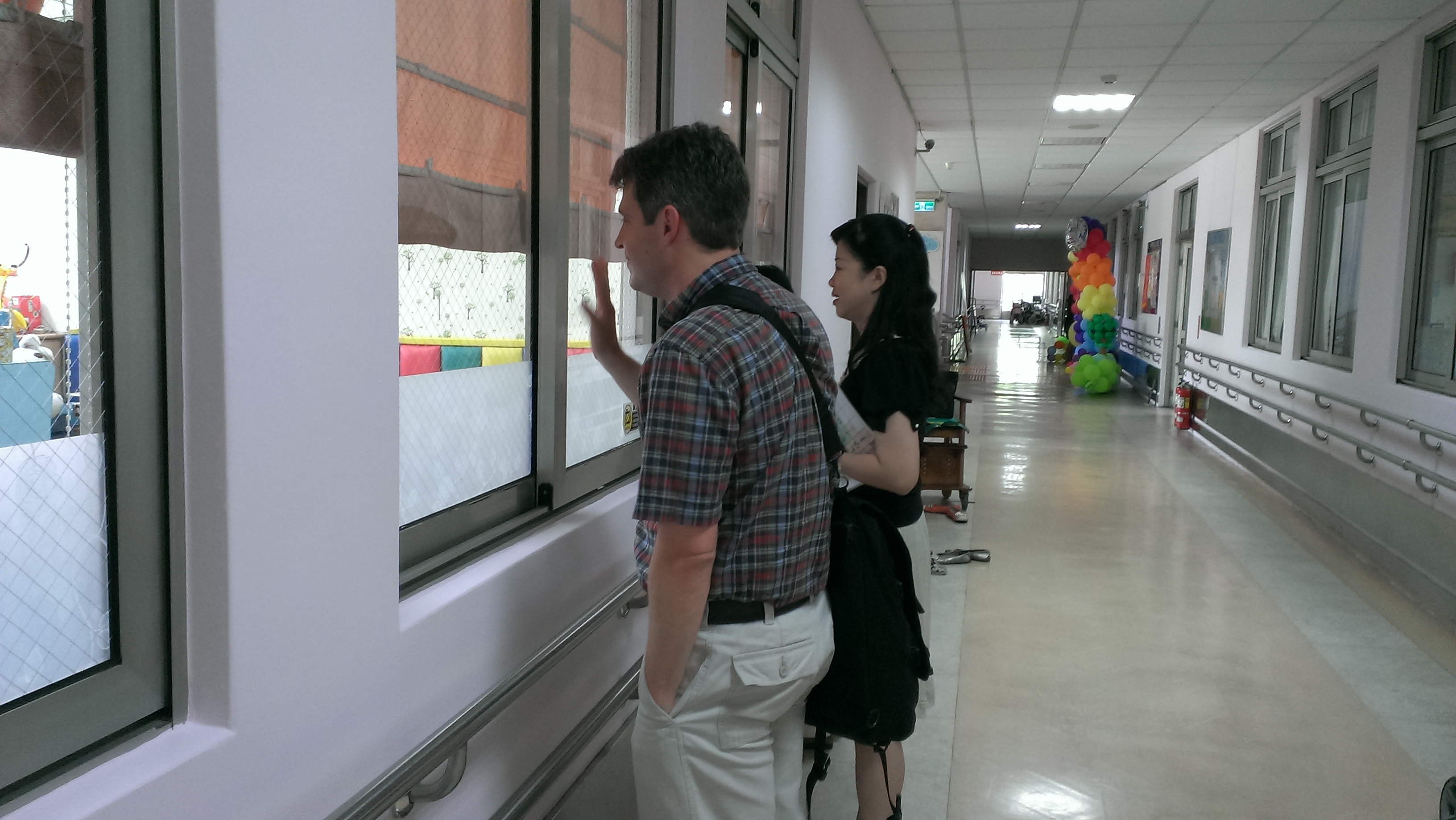 Photo of John McCarthy at Love Home-Maria Social Welfare Foundation in Taichung, Taiwan with Iris Lee, SLP